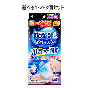 リニューアルに伴いパッケージ・内容等予告なく変更する場合がございます。予めご了承ください。 名 称 《セット販売》 のどぬ〜る ぬれマスク 就寝用プリーツタイプ 無香料 内容量 3セット(マスク×3枚、ぬれフィルター×3組) ×3個