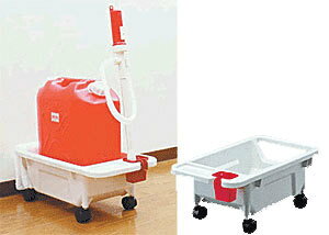 ポリタンクと給油ポンプを1台にまとめて収納。