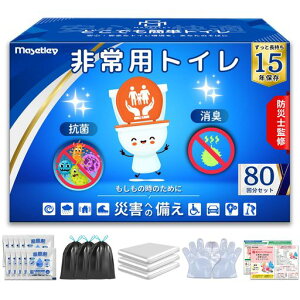 【非常時に安心を備える|簡易トイレ80回分セット】突然の災害や断水、停電時に防災用品として備えておきたい「非常用トイレ」内容:ひも付き排便袋80枚/高性能凝固剤80包/防臭袋8枚/ビニール手袋180枚...