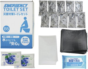 製品品番・C6018520商品構成抗菌剤入凝固剤・排便処理袋×各10、水に流せるペーパー×2、収納外袋・ポリ手袋・トイレポンチョ・除菌アルコールウェットティッシュ・発光スティック×各1商品説明B5ファイルボックスサイズコンパクトに備蓄可