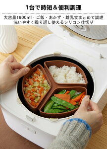 離乳食を同時に美味しく調理■ 家族の食卓をもっと便利に忙しい毎日でも、ご飯・おかず・離乳食を1台の炊飯器で同時に調理できる「炊飯器用シリコン仕切り」です。1