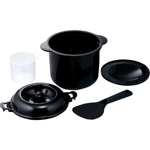 カラーブラック容量1合炊き特徴電子レンジで手軽に一合のご飯が炊け、そのまま食卓へ。持ち手付きで持ちやすいので、電子レンジへの出し入れが楽です。ご飯だけでなく、おかゆや炊き込みご飯も炊けます。商品サイズ145×110×133mm(満水: