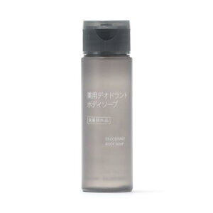 重量(梱包材含む) : 約60g 原産国・地域 : 日本製 仕様・混率 : 薬用デオドラントボディソープ 外寸 : ■縦3.10×幅3.10×高さ10.1cm 容量 : 50mL、部材ごとの素材 : ボトル:PE キャップ:PP