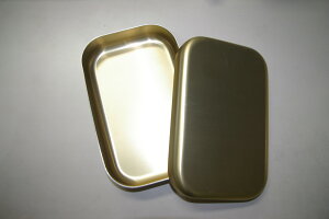 アルミのドカベンです。 シンプルな1点。 昔からのものは強度を増すために 蓋に段が付いているものが多いのですが、 こちらはつるっとした蓋です。 でも、強度は充分。 薄めのタイプです。 約170mm×110mm×37mmといったところで...