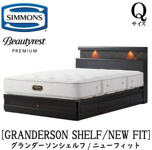 グランダーソン シェルフ ボックススプリング Q2サイズ(クイーン2)矢張り 無垢材 ライト コンセント ボックススプリング ベッドフレーム ダブルクッション ブラウン ベージュ ボックス2分割タイプ...