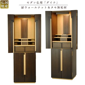 作りの丁寧な国産家具調仏壇 扉がウォールナット&タモ無垢材使用 無垢材でしか味わえない美しい木目をご堪能ください 現代アートを取り入れたモダンなデザイン 斬新なモダン仏壇 ウォールナットは世界三大銘木の一つと呼ばれる高級木