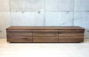 ■Mono -モノ- ASLA-200 TVボード WN(ウォールナット) 無垢の板材を削りこむことで、横方向の意匠を出したテレビボードです。引出し内の上段には、デッキ収納を150サイズには2箇所、180・200サイズには3箇所。