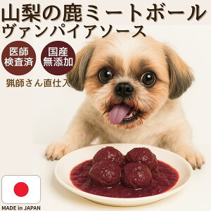・名称:鹿ミートボールヴァンパイアソース ・原材料名:鹿肉、肝臓、心臓、肺、脾臓、腎臓、血液 ・内容量:70g ・賞味期限:1年 ・保存方法:常温 ・販売者:株式会社イェーガー東京都小金井市本町1-13-13 ・広告文責:株式会社イェーガ