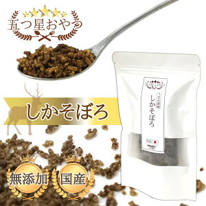 国内原料・国内製造の体にやさしいおやつ。 原材料は厳選した兵庫県産のニホンジカ肉のみを使用した鹿そぼろ。 鉄分を多く含んでいて栄養価が高く、高たんぱく・低脂肪・低カロリー! 体重が気になる愛犬・愛猫へのごほうびにもおすす