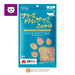 (商品名) ママクック フリーズドライのササミふりかけ 猫用 25g (商品情報) ほぐすのが大変という方に、ササミをほぐした商品です。 こだわりの材料を特殊製法で旨さを閉じ込めた定番商品です。 食べ...
