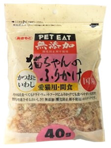 リニューアルに伴いパッケージ・内容等予告なく変更する場合がございます。予めご了承ください。 名 称 ペットイート 無添加 猫ちゃんのふりかけ 40g 内容量 40g 特 徴 ◆猫ちゃん食欲増進! ◆猫ちゃんの好きなかつお節と一口サイズ
