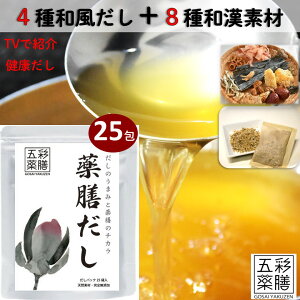 薬膳だしの説明 商品名 薬膳だし 名称 だしパック 内容量 250g(10g×25袋) 原材料名 かつお節、昆布、煮干いわし、椎茸、アガリクス、なつめ、サンザシ、菊芋、ヤマブシタケ、杜仲葉、エゾウコギ...