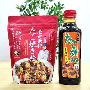 大阪名物くいだおれ太郎が、本場大阪の味を伝えます! 食品添加物を使わず、安心・健康を追求した国産小麦使用。 大阪日本橋・黒門市場にある老舗「山長商店」の出汁をたっぷり使ったたこ焼き粉です! 大黒たこ焼きソースは、ソースの
