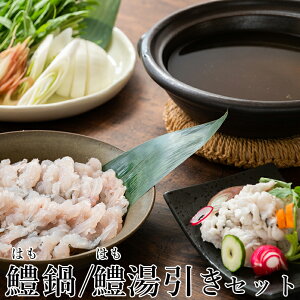【商品説明】 瀬戸内産の天然鱧を使った、職人手造りのハモ鍋です。 ダシと野菜、薬味までセットになった「鱧鍋セット」と、「鱧の湯引き」のセット商品です。 食材の準備は不要ですので、すぐに料亭の鱧(はも)の味をお召し上がりい