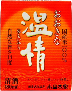 商品説明 おおきな温情 国産米を100%使用し、代々受け継がれてきた技と天然水で仕込んだ「おもいやり」たっぷりのお酒です。 お米由来のしっかりした自然の旨さをひきだした糖類無添加、すっきりまろやかな味わいのアルコール分14度に
