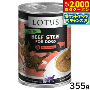 食材の栄養と美味しさを逃がさない無水調理のウェットフードです。ビーフの正肉とアスパラガス、ニンジン、ブルーベリーを煮込んだシチューレシピです。商品名ロータス ドッグフード グレインフリー 無水調理ウェットフード ビーフ&ア