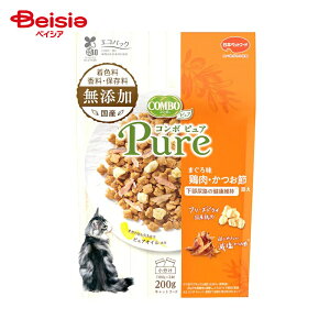 コンボピュア キャットフード ピュア キャット 15歳以上用 【無添加素材使用】 【国産】 【小分包装】 まぐろ味・鶏肉・かつお節添え 200g本体サイズ (幅X奥行X高さ) :18×6×25cm本体重量:0.2kg原産国:日本