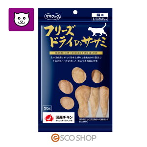 (商品名) ママクック フリーズドライのササミ 猫用 30g (商品情報) こだわりの材料を特殊製法で旨さを閉じ込めた定番商品! 食いつきが違います! ハサミで細かく切ってドライフードのトッピングとしても重宝 します。 ◆フリーズドライと