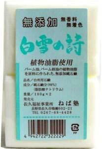 サイズ:180グラム (x 2)◆商品名:白雪の詩 180g×2個入り ねば塾 無添加石鹸 ×10個セット (4942722322229)無添加純石鹸でお得なビックサイズの真っ白な石鹸。パームとパームの核油だけを原料に中和法で作った純...