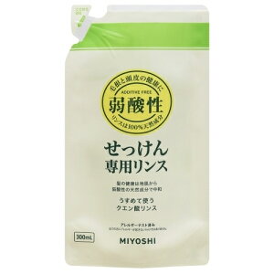 内容量【300ml】詰替え用【製品特徴】■無添加せっけんでシャンプーした後は、弱酸性リンスできしみをやわらげ、髪を仕上げてください。■合成リンスや添加物が苦手な方も、天然成分で食品添加物でもあるクエン酸なら安心です...