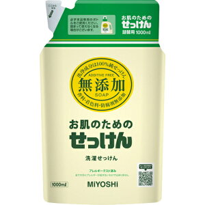 商品説明 「ミヨシ 無添加 お肌のためのせっけん つめかえ用 1000ml(無添加石鹸)」は、 肌着・ベビー用衣類・高級コットンをやわらかく仕上げる植物性の洗濯用液体せっけん(つめかえ用)です。 成分は全て無添加。菜種油が主原料なので、繰
