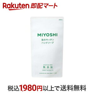 【商品説明】手肌にやさしい泡タイプのキッチン用ハンドソープ。サッと洗え、手アレも防ぎ、無添加なので食材への香り移りもなく安心して使えます。【仕様】●注文単位:1個(220mL)生産国:日本商品区分:化粧品メーカー:ミヨシ石鹸