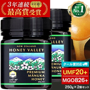 プレミアム マヌカハニー UMF20+ 250g 2個セット ハニーバレー 名称 マヌカハニー 原材料名 天然蜂蜜 内容量 250g 賞味期限 製造より5年 保存方法 高温多湿、直射日光を避けて保存してください 原産国 ニュージーラン...