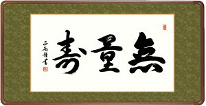 表装 : 金襴佛表装 本紙 : 新絹本 額:天然女桑木 ※表装の色・柄が写真と異なる場合があります。 説明 無量寿とは計り知れない時間をあらわし、すべ
