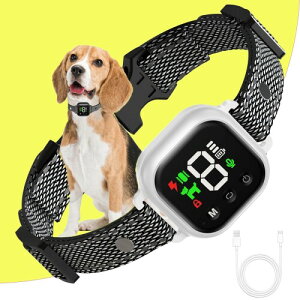 無駄吠え防止 首輪 愛犬むだ吠え防止グズ 全自動式 犬しつけ 7階段センサー LCDディスプレイ 吠え声自動認識 充電式 IP67防水 節電デザイン 近隣トラブル解消 安眠妨害解決 小型犬/中型犬/大型犬用...
