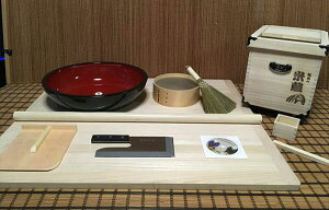 チ ABS樹脂 1個 ◎麺棒(延し棒):ほお 径3,5×90センチ 1本 ◎駒板:天然木M 18×22センチ 1個 ◎ふるい:径50メッシュ 1個 ◎粉ホーキ 1本 ◎【そば粉】極上石臼一本挽き...