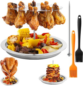 【15本同時調理可能な鶏もも肉ロースト機能】特殊溝付きデザインで15本の鶏もも肉を同時焼き可能溝の深さ差により均一な熱循環を実現(各部位が同時に完焼)取り外し可能なステンレス串(長さ20cm/耐荷重5kg)付属【プロ仕様シャワルマス