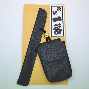 刻みタバコなどを入れる入れ物のことを【かます】と言います。 刻み煙草入れと、腰差しキセル入れが付いています。 キセルは、長さ19.5cm程度のものが使用できます。 ※かます素材は、厚み薄めで、汚れが気にならない仕上がりです。 かま