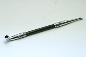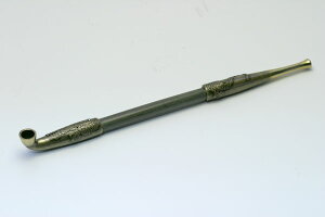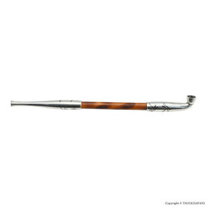 真鍮の素材に銀色鍍金仕上げ。羅宇は黒の染付けをした竹製。 全長(約):210mm(掃除には「パイプ掃除用ロングモール」がおすすめ) ※写真に写っているタバコは商品に含