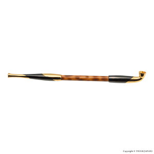 浅草煙管元禄黒金色鍍金(あさくさぎせるげんろくくろきんしょくめっき) 特徴:雁首と吸い口は、金色鍍金と烏金(カラスがね)色の塗装を組み合わせた真鍮製。古い時代の上物の煙管によく見られる伝統的な模様を再現...