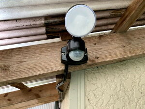 コンセント式の屋外用センサーライトです。センサーが検知し点灯を開始する周囲の明るさを調整可能、お好みに合わせて点灯時間を約5秒〜10分の間で設定可能です(おおよその設定ですので細かい設定はできません)。屋外に設置できる防水
