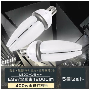 商品名防水型コーンライト 消費電力60W 全光束12000lm 口金E39 照射角度360度 電源本体内蔵 力率0.95 入力電圧AC85-265V 使用温度-20℃〜+50℃ 色温度電球色3000K/白色4000K/昼白色5000K...