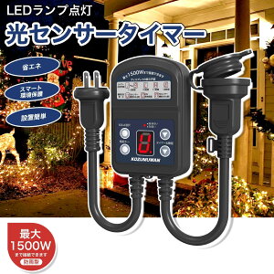 光センサータイマー 商品詳細 ブランド KOZUMUWAN カラー ブラック サイズ ●入力 電圧:AC100V〜125V ●出力 電圧:AC100V〜125V ●最大接続容量:15A 最大1500W ●有効コード長:入力側約17...