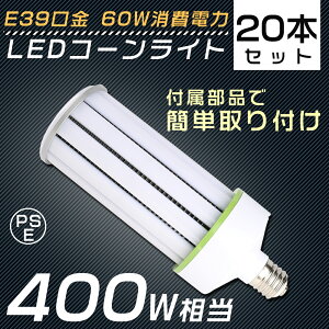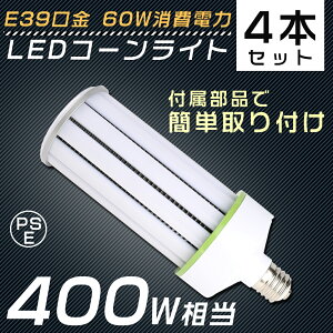 製品仕様 ■製品名 軽量型LEDコーンライト ■消費電力 60W(400W水銀灯相当) ■口金 E39 ■色温度 電球色3000K/白色4000K/昼白色5000K/昼光色6000K ■単品サイズ 100*290mm ■単品重量 約0...