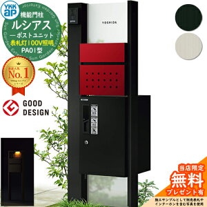 YKKap 機能門柱 ルシアス ポストユニットPA01型 表札灯タイプ(24V照明) 【後出し:T11型ポスト(アルミ色) / ルシアス 宅配ボックス1型】セット 透過パネルのルシアス ポストユニットです...