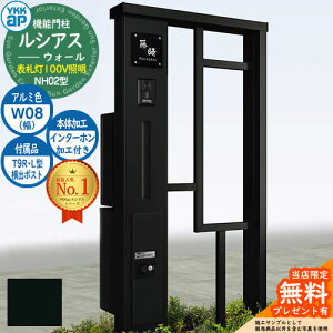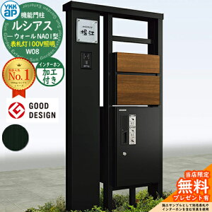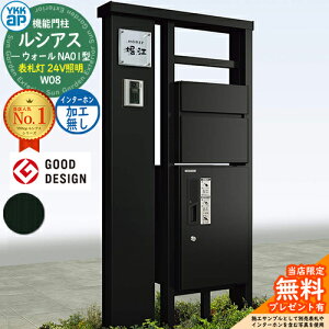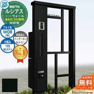 YKKap 機能門柱 ルシアス ウォールNA01型 W08 表札灯タイプ(100V照明) インターホン加工付き 【前出し:T10型ポスト(複合色) / ルシアス 宅配ボックス1型】セット 存在感のある宅配ボックス付き機能門柱...