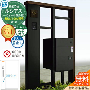YKKap 機能門柱 ルシアス ウォールNJ01型 W10 表札灯タイプ(100V照明) インターホン加工付き 【前出し:ルシアス宅配ポスト3型】セット 存在感のある宅配ボックス付き機能門柱 販売条件...