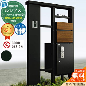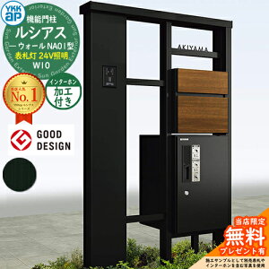 YKKap 機能門柱 ルシアス ウォールNA01型 W10 表札灯タイプ(24V照明) インターホン加工付き 【前出し:T10型ポスト(複合色) / ルシアス 宅配ボックス1型】セット 存在感のある宅配ボックス付き機能門柱...
