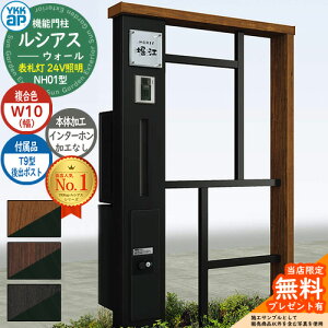 YKKap 機能門柱 ルシアス ウォールNH01型 W10 表札灯タイプ(100V照明) T9型・宅配ボックスセット 正面パネル【ポスト加工付き / 宅配加工付き / インターホン加工付き】 存在感の...