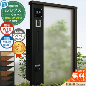 YKKap 機能門柱 ルシアス ウォールPH01型 W10 表札灯タイプ(100V照明) T9R(L)型・宅配ボックスセット 正面パネル【ポスト加工付き / 宅配加工付き / インターホン加工なし】 ...