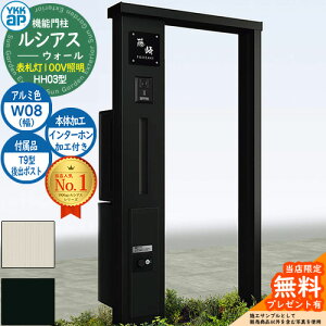 YKKap 機能門柱 ルシアス ウォールHH03型 W08 表札灯タイプ(100V照明) T9型・宅配ボックスセット 正面パネル【ポスト加工付き / 宅配加工付き / インターホン加工付き】 存在感の...