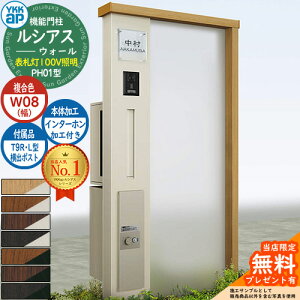YKKap 機能門柱 ルシアス ウォールPH01型 W08 表札灯タイプ(100V照明) T9R(L)型・宅配ボックスセット 正面パネル【ポスト加工付き / 宅配加工付き / インターホン加工付き】 ...