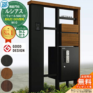 YKKap 機能門柱 ルシアス ウォールNA01型 W10 表札灯タイプ(100V照明) インターホン加工付き 【前出し:T10型ポスト(複合色) / ルシアス 宅配ボックス1型】セット 存在感のある宅配ボックス付き機能門柱...