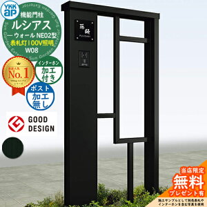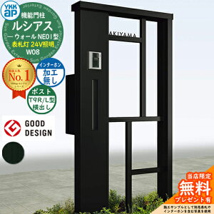 YKKap 機能門柱 ルシアス ウォールNJ01型 W08 表札灯タイプ(24V照明) インターホン加工付き 【後出し:ルシアス宅配ポスト3型】セット 存在感のある宅配ボックス付き機能門柱 販売条件 ...
