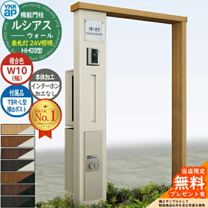 YKKap 機能門柱 ルシアス ウォールHH03型 W10 表札灯タイプ(24V照明) T9R(L)型・宅配ボックスセット 正面パネル【ポスト加工付き / 宅配加工付き / インターホン加工なし】 存...