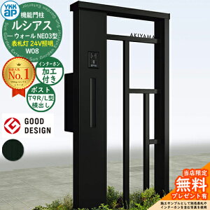 YKKap 機能門柱 ルシアス ウォールNE03型 W08 表札灯タイプ(100V照明) T9R(L)型セット 正面パネル【ポスト加工付き / インターホン加工なし】 存在感のあるウォール型の機能門柱...